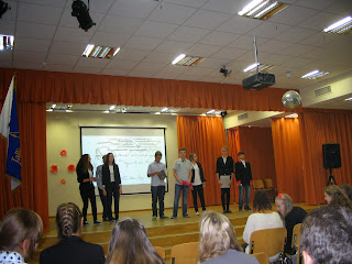 Пятница - последний день "Лицейской недели" последний день первой четверти. Зал полон, за занавесом волнуются ребята с-направления, которые под руководством Н.В.Феклистовой покажут сцены из "Маскарада", а в зале волнуются ребята из лицея. Паэ,Ляенемере и Ласнамяэской гимназий, которые приняли участие в викторине"А.С.Пушкин М.Ю.Лермонтов - два гения русской поэзии" и ждут объявления итогов. Замечательный финал, всё получилось, праздник закончился, но впереди новые незабываемые праздники и события.